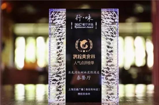 在以全球知名旅游目的地美食大搜罗为目的的“行走的美味,2017亚洲餐厅评选”中红树林泰餐厅又斩获携程美食林携程美食林“人气泰餐厅”大奖!