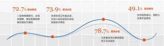 调查显示,超过半数的男性和大部分女性认同,人工智能的迭代式发展使得我们需要快速学习如何变得更具有“情绪智力”,即感知、使用、管理自己和他人情感的能力,女性无疑在此方面有着先天优势。73.9%的受访女性认为“未来协同工作是主流,女性人际互动及社会化技能优于男性”,72.7%的受访男性认同“AI没有情绪智力,女性在理解、表达和感知情感方面优于男性”。女性拥有AI无法替代的“她”能力,使得在雇主强调面向客户的终端服务、差异化挖掘、跨界融合创新以及对人的关注的大环境下,女性或将更具有更大程度的职业发挥空间与就业优势。